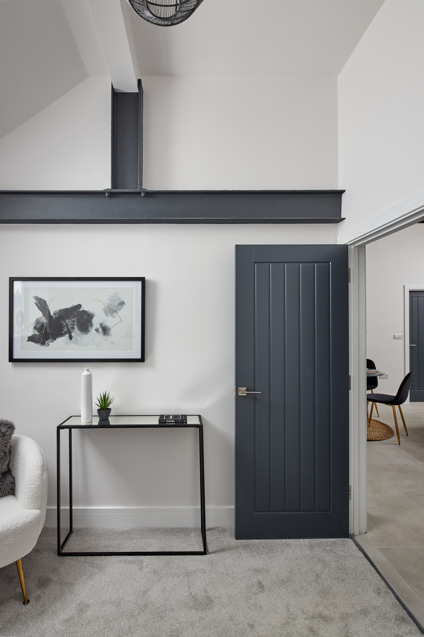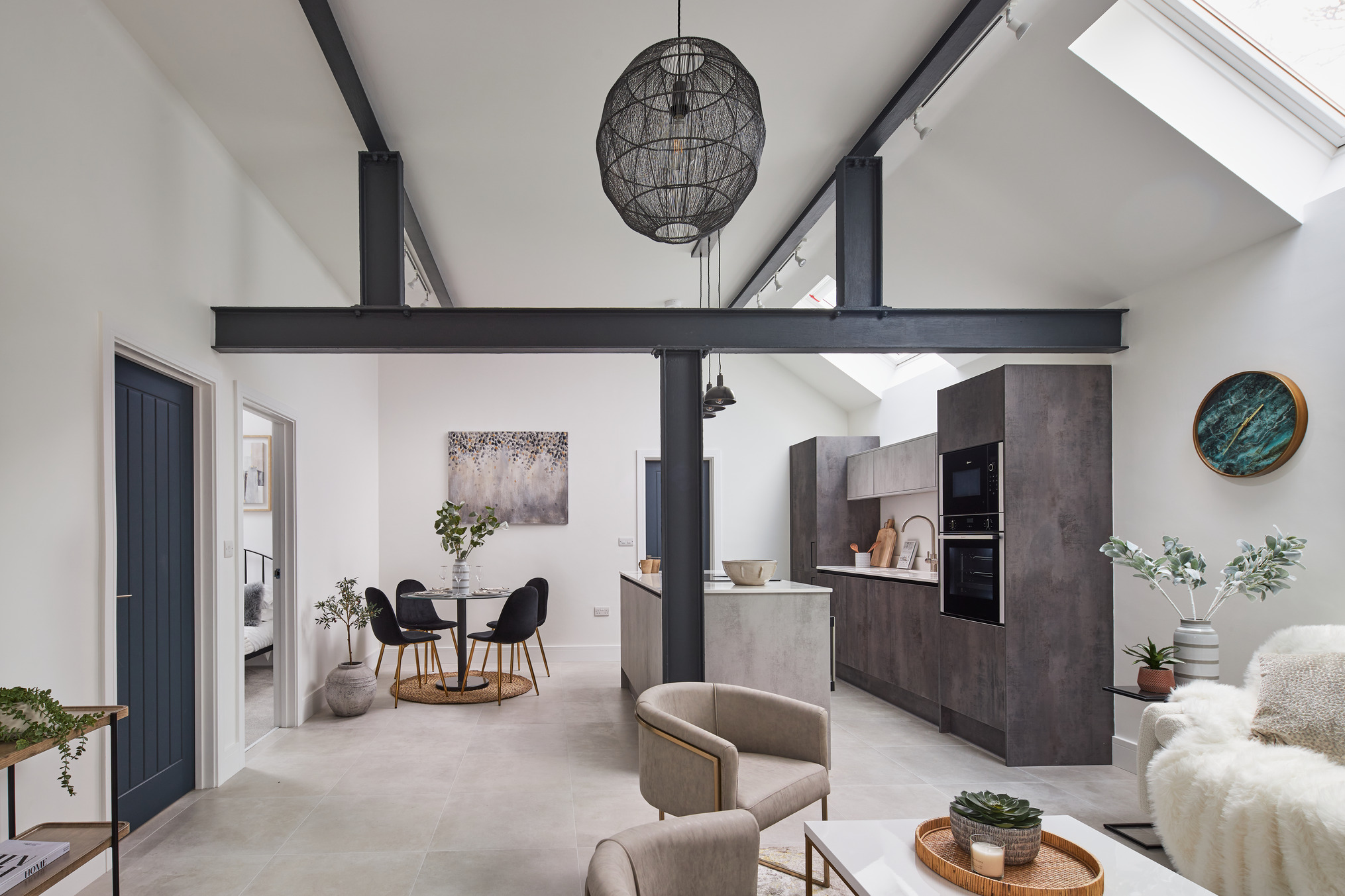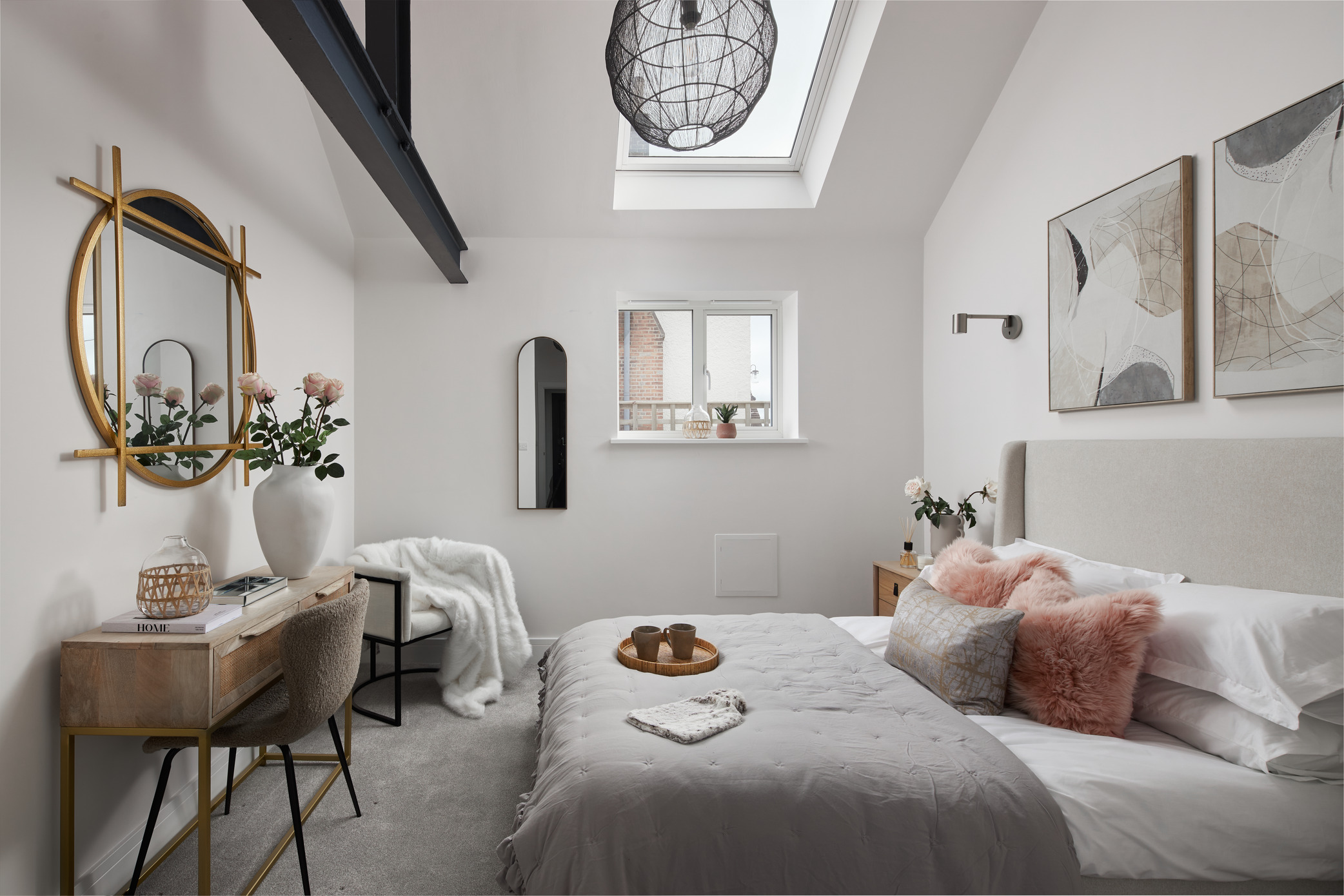 To complement the beautiful contemporary renovation of this property we curated a modern scheme that included a combination of metal accents, lots of texture and sumptuous soft furnishings to achieve a fresh, yet homely feel. The monochrome colour palette was paired with pops of colour, to give buyers a sense of warmth and cosiness, without overpowering the key architectural features of this unique new home.