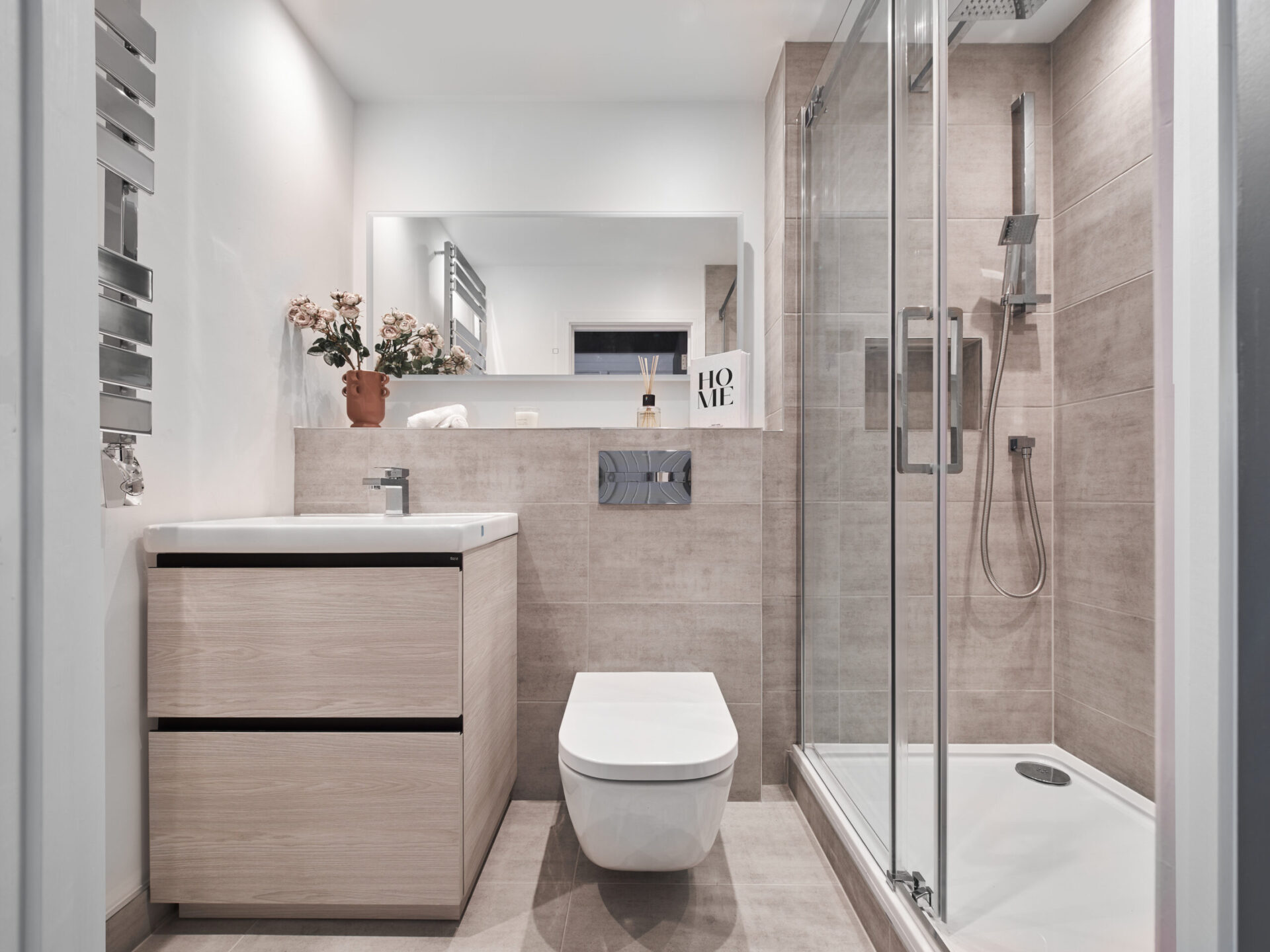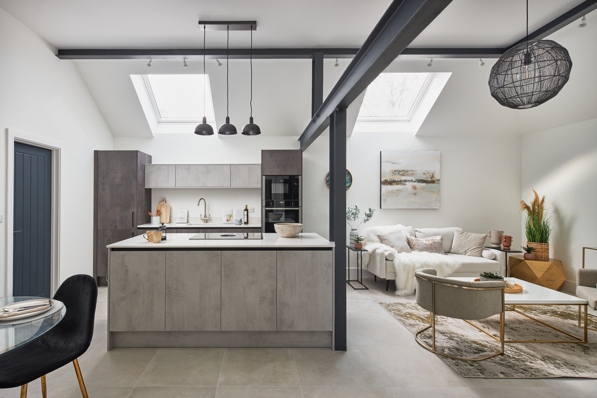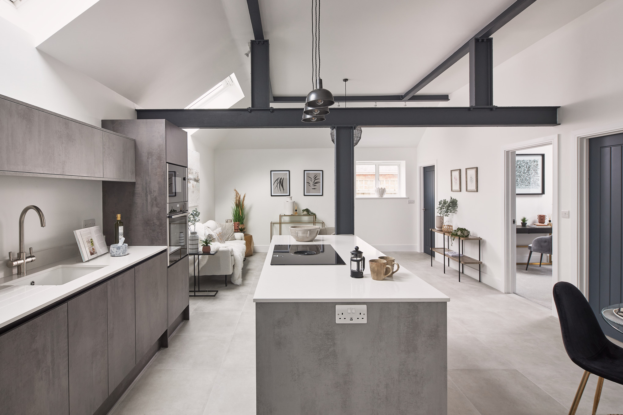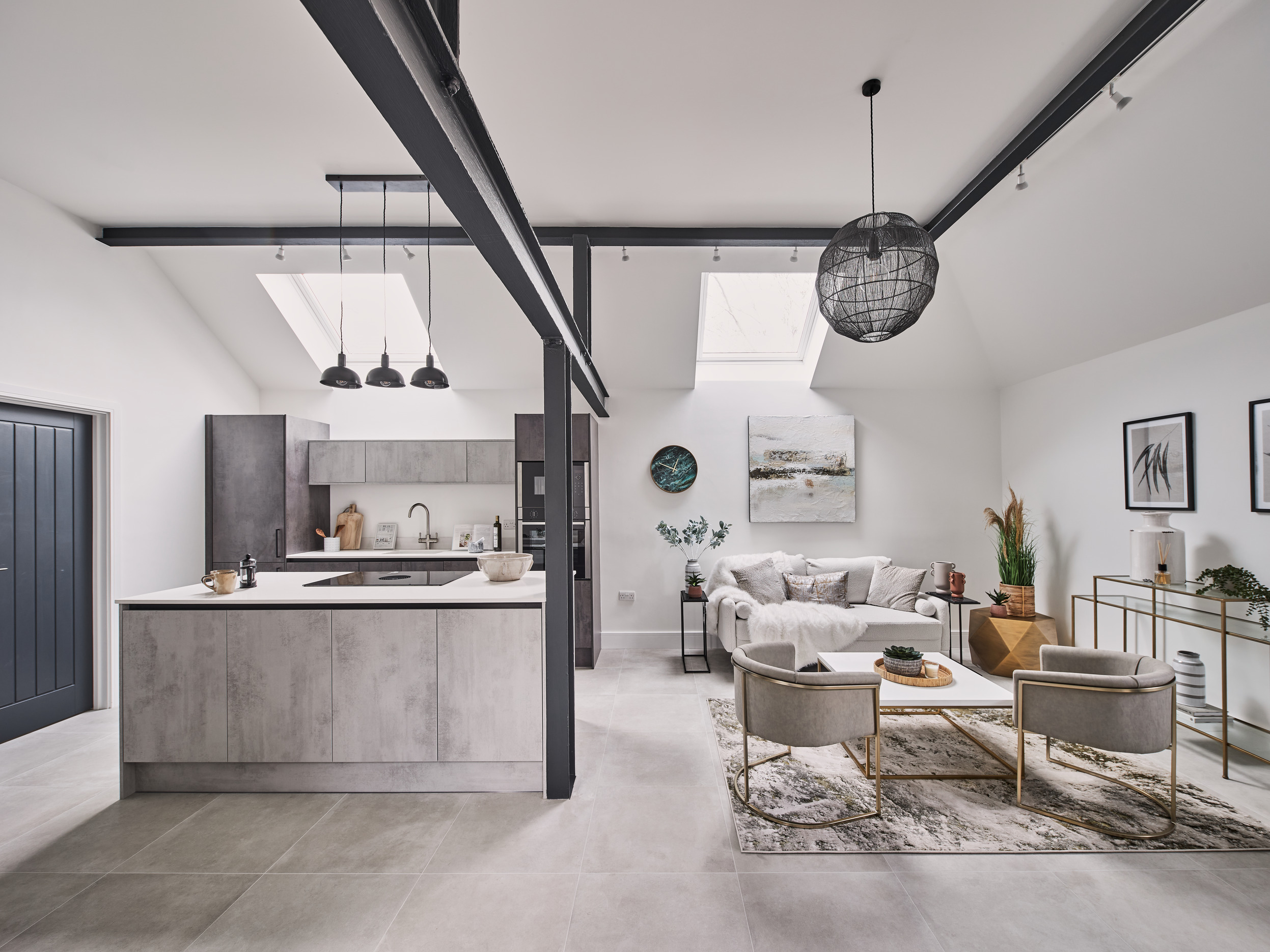 To complement the beautiful contemporary renovation of this property we curated a modern scheme that included a combination of metal accents, lots of texture and sumptuous soft furnishings to achieve a fresh, yet homely feel. The monochrome colour palette was paired with pops of colour, to give buyers a sense of warmth and cosiness, without overpowering the key architectural features of this unique new home.