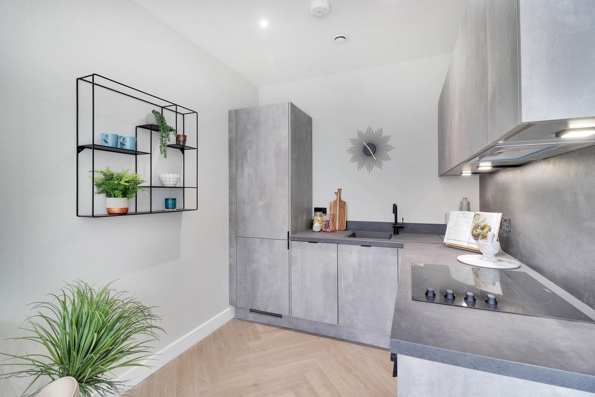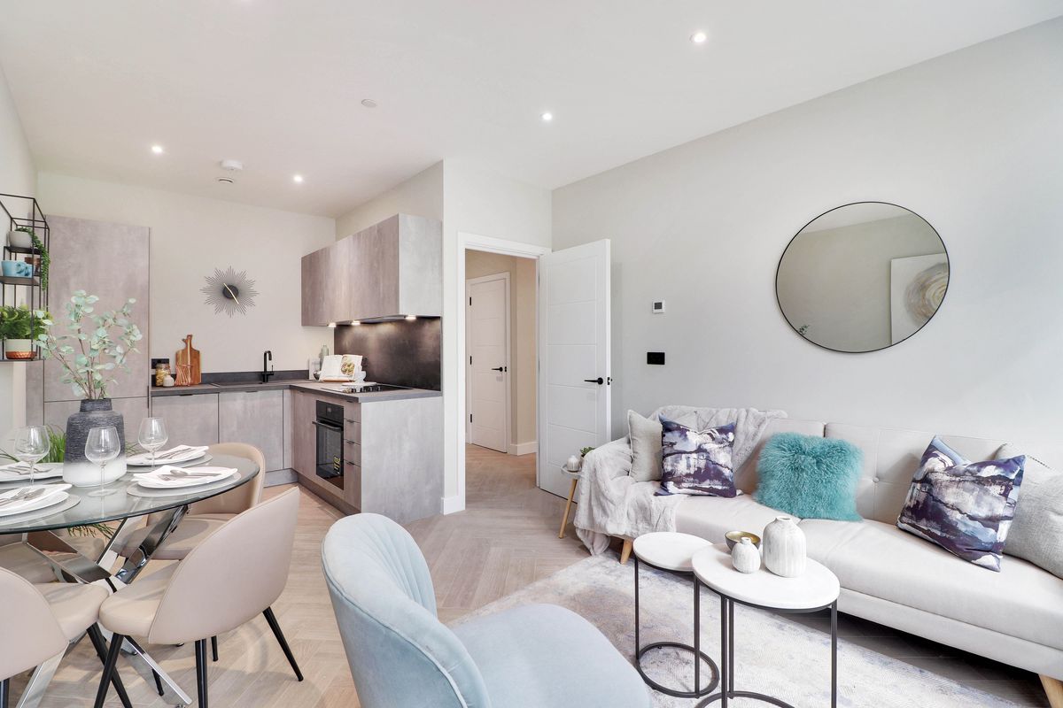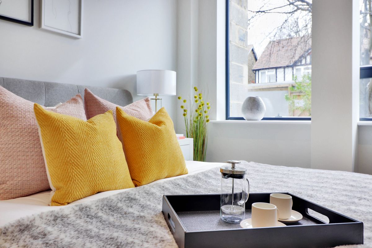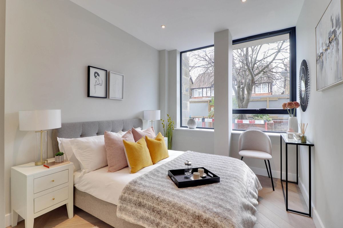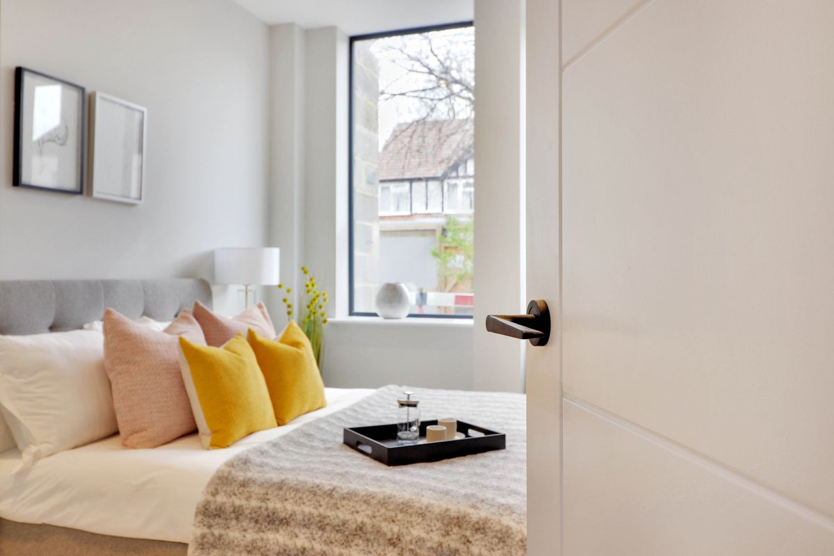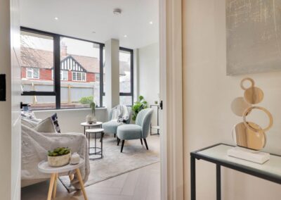 The West House development in Orpington is a collection of twenty 1-bed apartments where the show home brief was ‘cool and contemporary’, targeting the first time buyers market. We introduced black metal accents to inject an edgy vibe which was fresh and fun, and blended these with pops of colour and sumptuous soft furnishings to keep the space feeling homely.