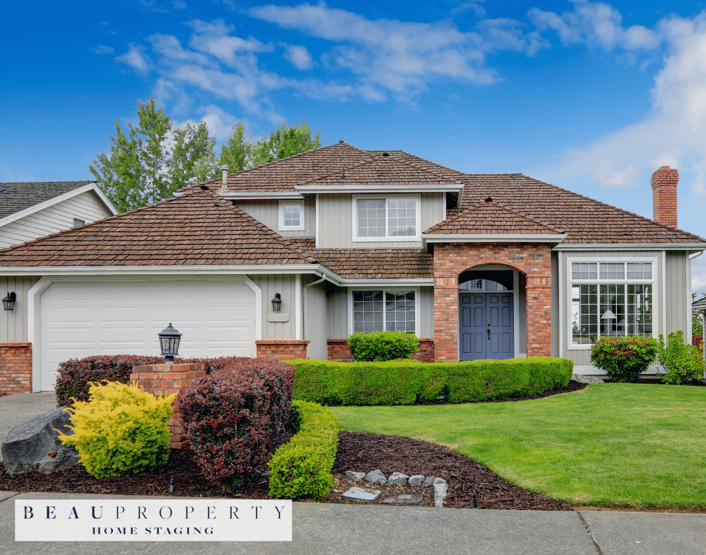 When staging your home’s exterior, don’t underestimate the power of small details like a colourful front door to attract buyers’ attention right from the start.